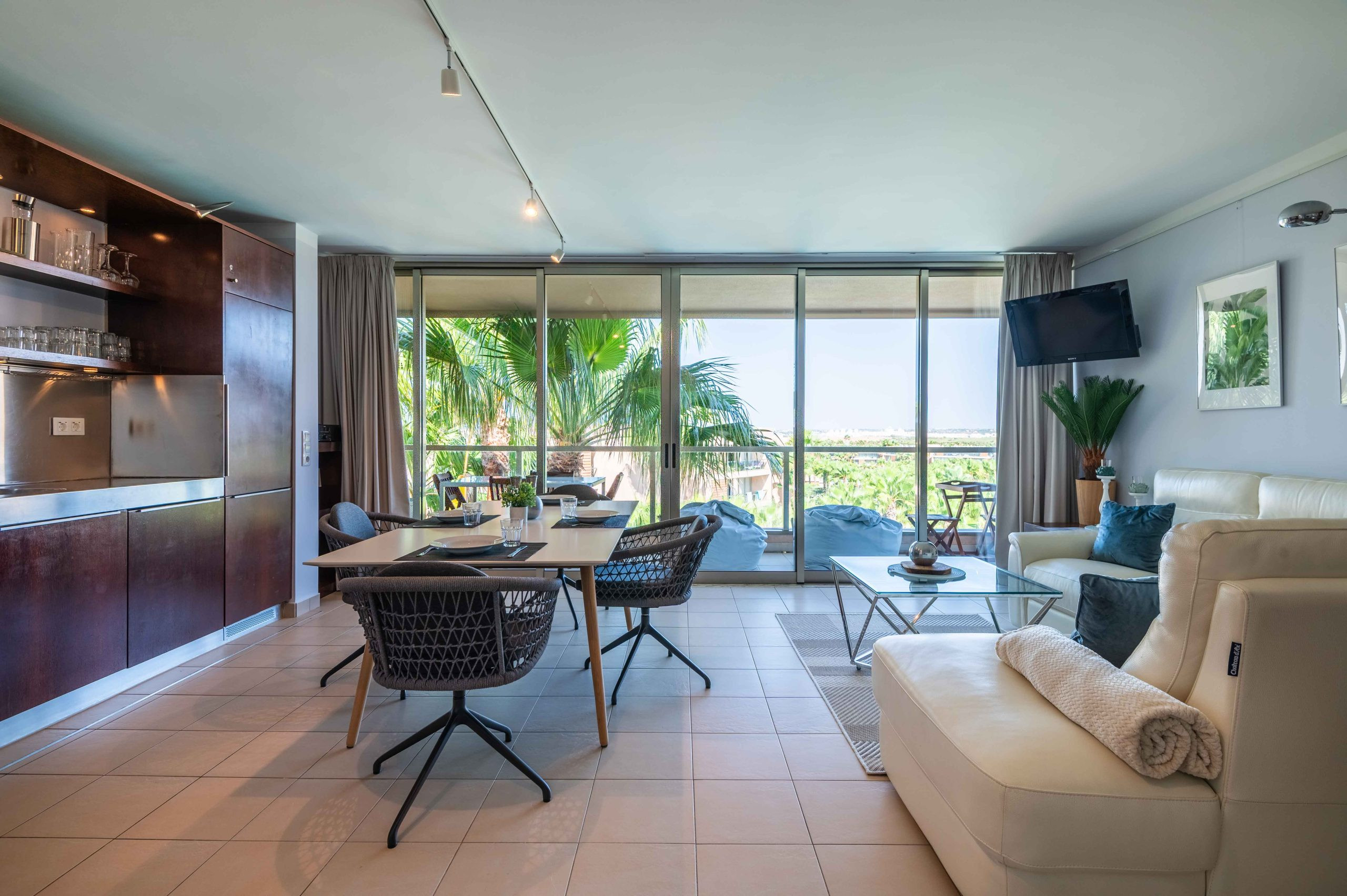 O apartamento em Albufeira tem 2 quarto(s) e capacidade para 4 pessoa(s). Alojamento de 120 m² confortável e moderno, com vistas para o mar e lago. Encontra-se a 300 m da praia de areia "Salgados", 300 m do campo de Golf "Salgados", 800 m do supermercado "Coviran", 1 km "Adega dos Salgados", 7 km do parque aquático "Zoomarine", 62 km "Faro", 62 km do aeroporto "Faro" e localizado numa zona residencial zone e junto ao mar.Dispõe de jardim, mobiliário de jardim, máquina de lavar roupa, acesso internet (wifi), varanda, ar-condicionado na sala e em alguns quartos, piscina comunitária, estacionamento ao ar livre no mesmo edifício, tv satélite.A kitchenette, de vitrocerâmica, está equipada com frigorífico, microondas, forno, congelador, máquina de lavar louça, louça/talheres, utensílios/cozinha, máquina de café e torradeira.