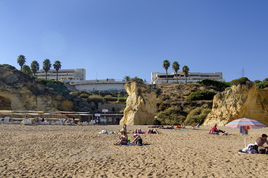 Na praia está localizado um bom restaurante, actividades de lazer e, claro, essa bela vista ao longo da baía em forma de meia-lua de Lagos a Alvor.