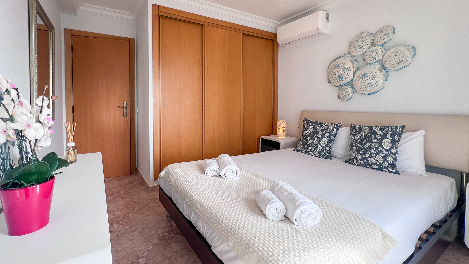 O apartamento em Quarteira tem 2 quarto(s) e capacidade para 6 pessoa(s).