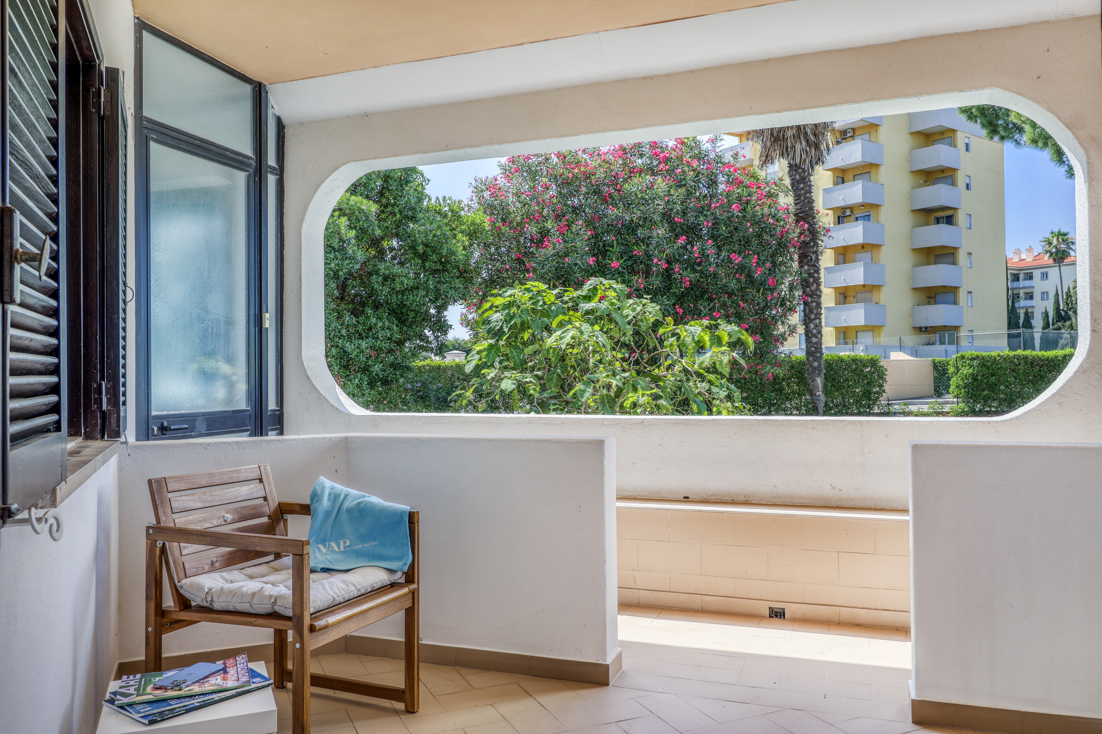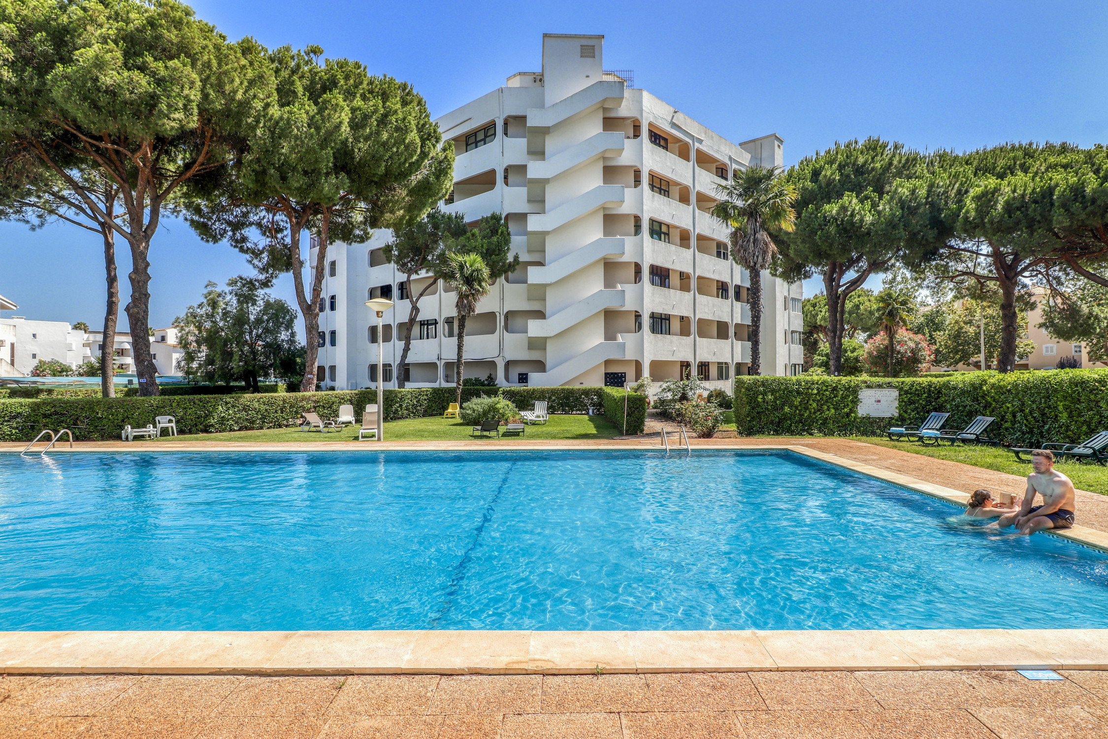 O apartamento oferece uma linda vista para a piscina em terraço privado. Está equipado com televisão, ferro de engomar, micro-ondas, forno, congelador, máquina de lavar roupa, louça/talheres, utensílios/cozinha, cafeteira e torradeira.