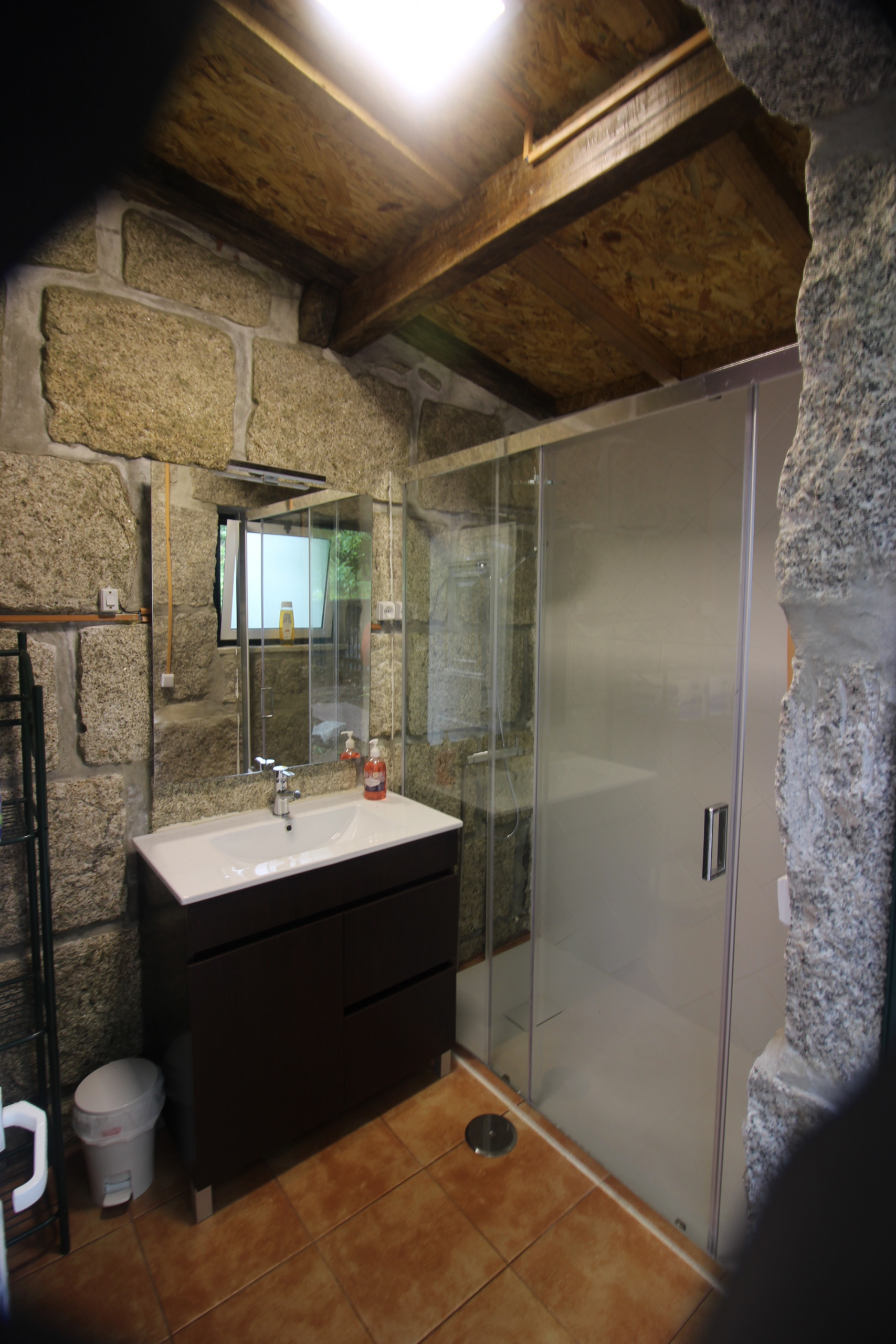 Os sanitários (duches e WC) são comuns aos 4 Bungalows e estão situados num edifício em pedra. O alojamento fornece toalhas de banho e roupões.