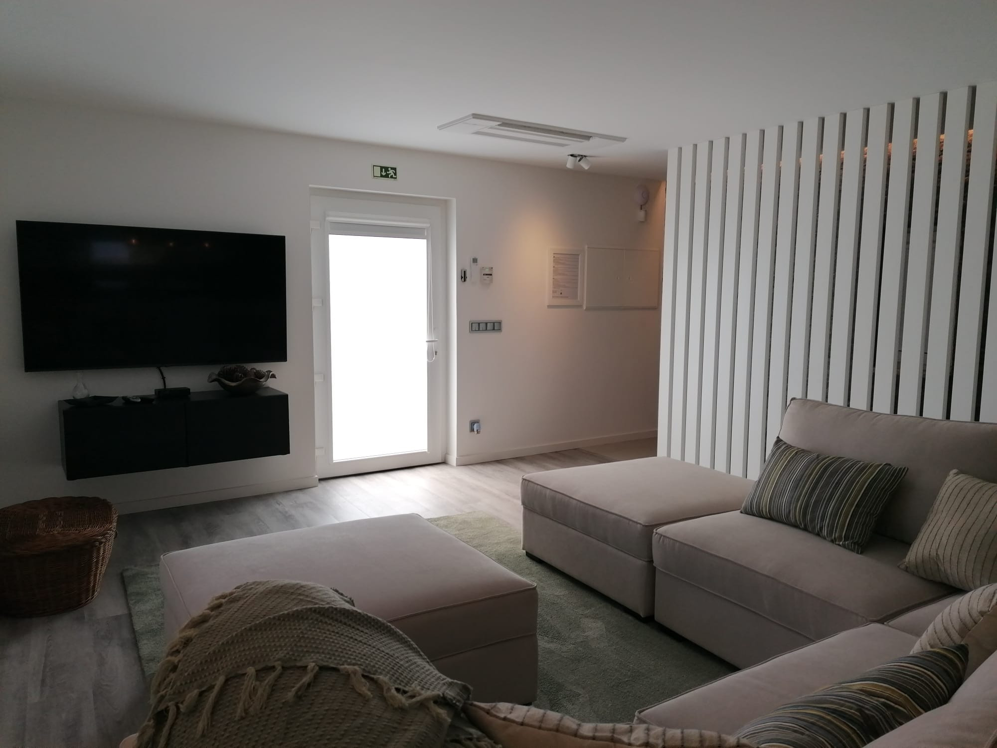 Um espaço composto por 3 quartos (2 camas de casal e 2 beliches), cozinha equipada, sala de estar totalmente mobilada, 2 casas de banho (uma de serviço e outra com banheira) e espaço de lazer composto por mesa de ténis de mesa/ping-pong.