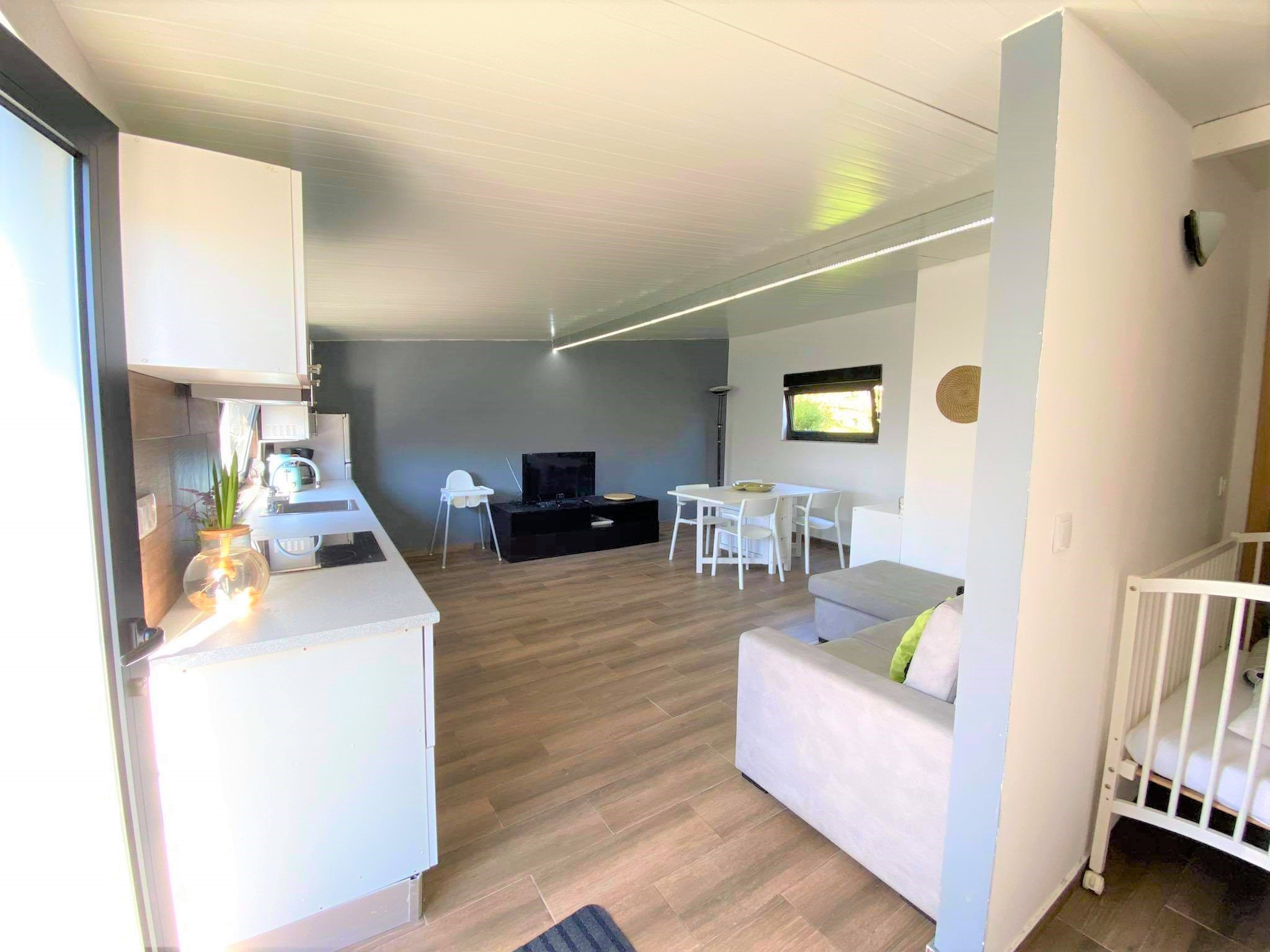 The accommodation is equipped with the following items: garden, garden furniture, barbecue, iron, internet (Wi-Fi), electric heating, air conditioning in the living room, private swimming pool, open-air parking the same building, 1 TV.