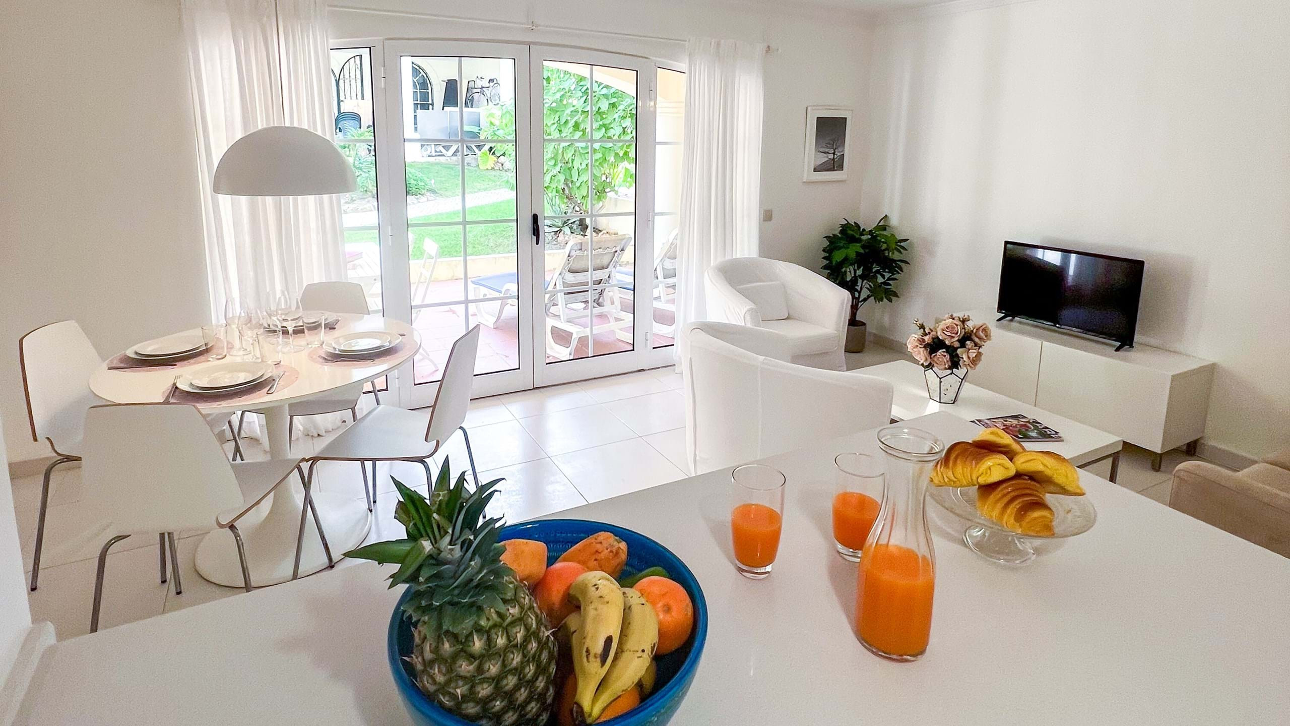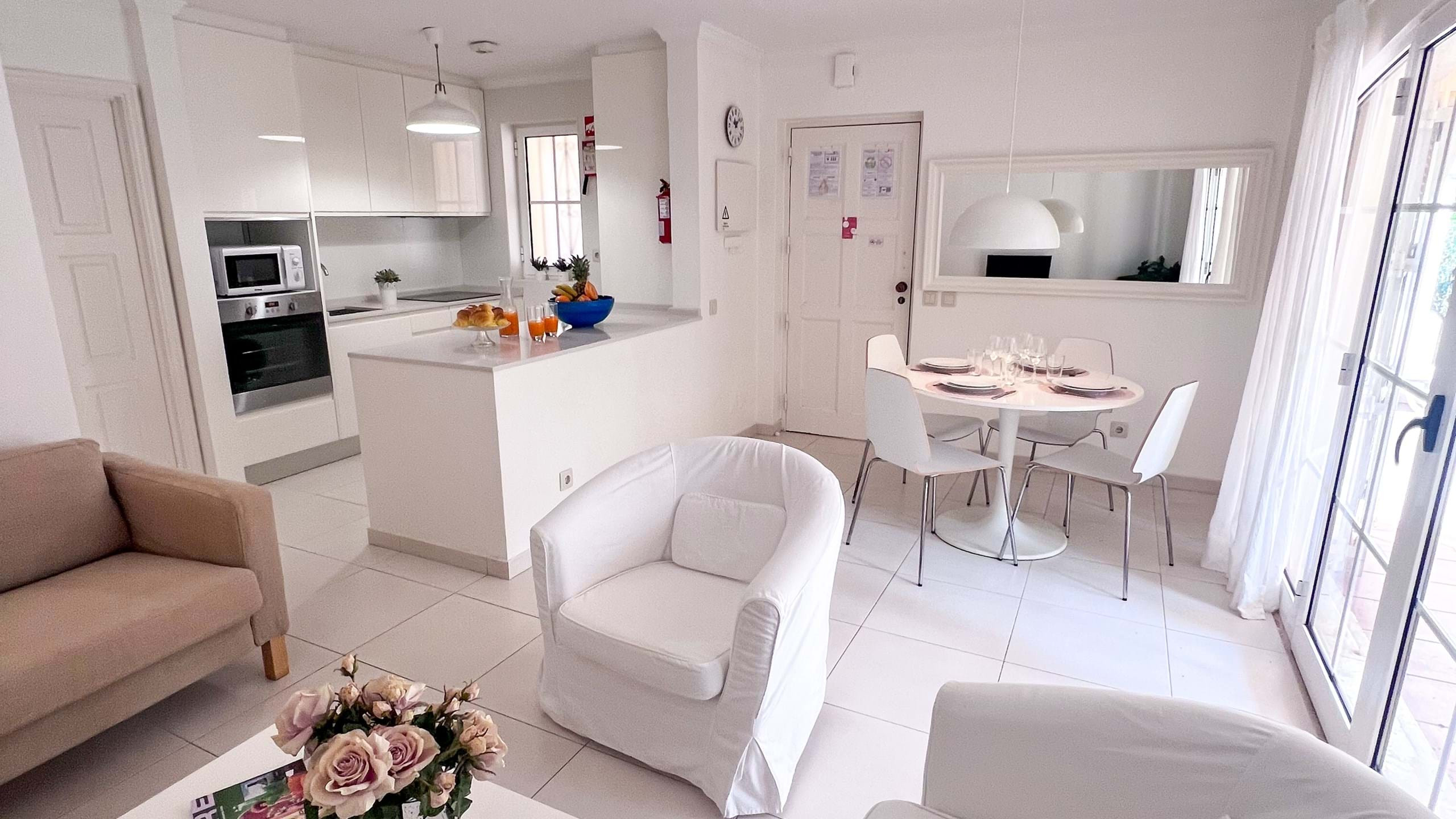 El apartamento en Vilamoura posee 2 dormitorio(s) y capacidad para 4 personas. Alojamiento de 60 m². Dispone de jardín, mobiliario jardín, terraza, lavadora, plancha, acceso internet (wifi), secador, calefacción central, aire acondicionado, piscina comunitaria, parking aire libre, 1 Televisor.La cocina americana, de vitrocerámica, está equipada con nevera, microondas, horno, congelador, lavavajillas, vajilla/cubertería, utensilios/cocina, cafetera, tostadora y hervidor de agua.