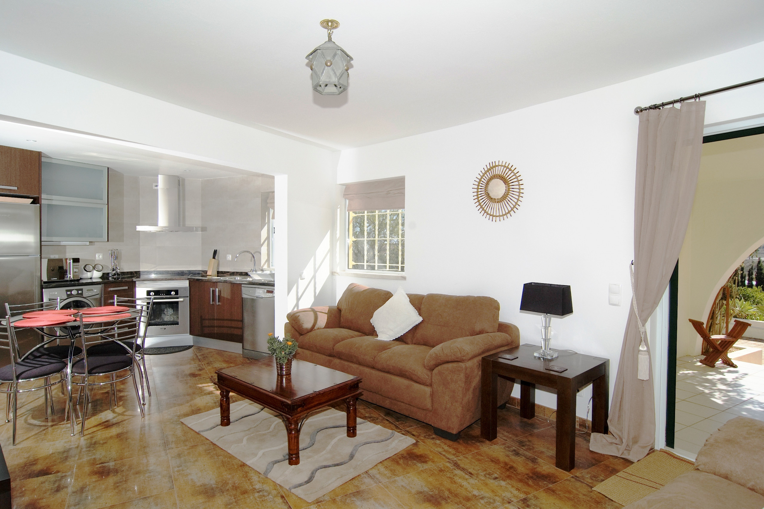 Se encuentra a 600 m del supermercado, 1 km de la playa de arena "Meia Praia", 3 km del campo de Golf "Palmares", 90 km del aeropuerto y está ubicado en una zona tranquila y en el complejo residencial.