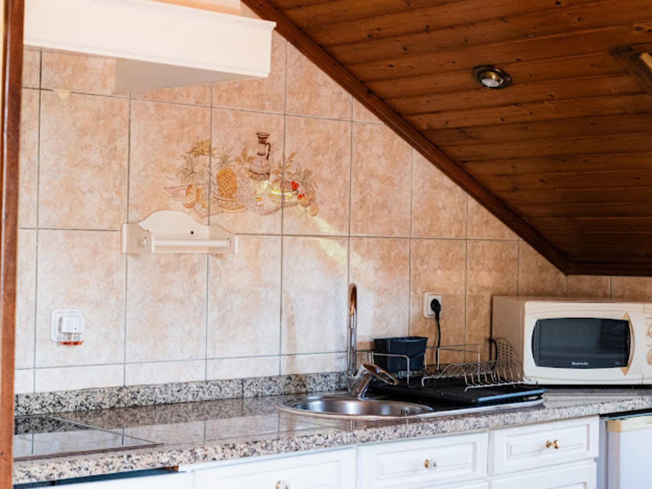 La cuisine indépendante, à induction, est équipée avec réfrigérateur, micro-ondes, four, congélateur, lave-vaisselle, vaisselle/couverts, ustensiles/cuisine, cafetière et bouilloire.
